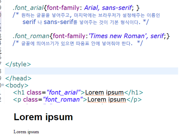 - 일반적으로 한 단어로 이루어진 폰트는 따옴표를 사용하지 않습니다.
