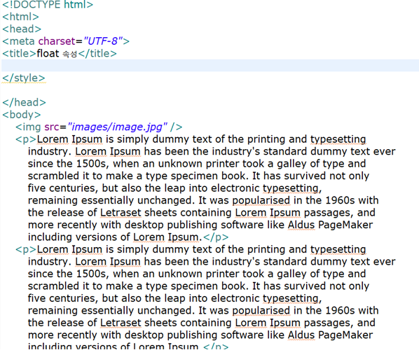위의 형태를 가지고 실행. - img 태그: Inline 형식의 태그, p 태그: block 형식의 속성 태그 이므로 각각 나뉘어서 출력 됩니다.
