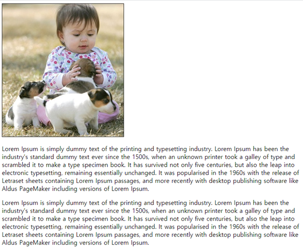 float : left 를 이용하여 사진을 왼쪽으로 붙임으로 함께 같은 줄에 출력 될 수 있도록 만들었습니다.