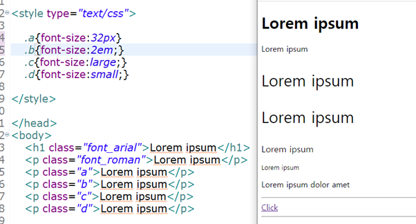 - em : 배수 이므로, p태그의 기본 사이즈는 16px 이므로 a와 같은 크기