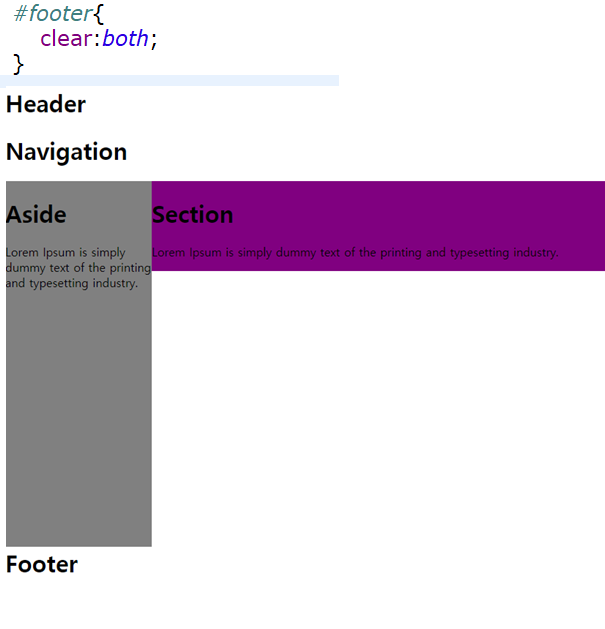 이러한 상황에서 footer는 적용되지 않아야 합니다.