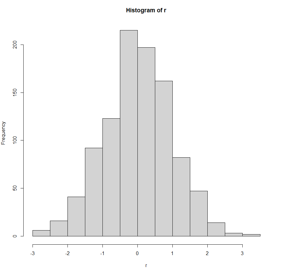 hist(r) # 대칭성