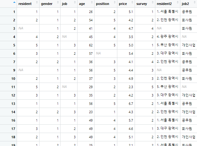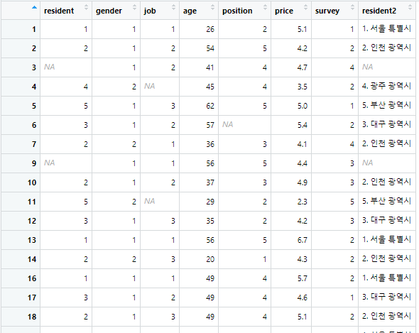 dataset2$resident2[dataset2$resident == 1] <- '1. 서울 특별시'