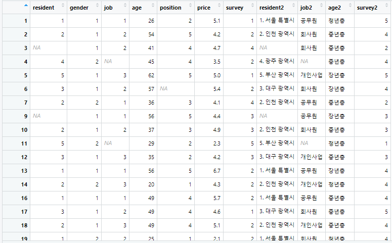 dataset2$job2[dataset2$job == 3] <- '개인사업'
