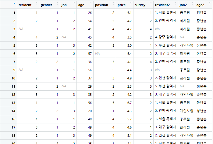 dataset2$resident2[dataset2$resident == 2] <- '2. 인천 광역시'
