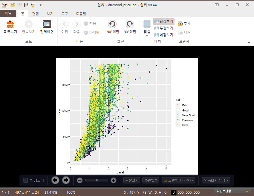 diamonds 활용하여 특징을 살펴보겠습니다.