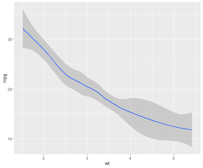 qplot(wt,mpg,data=mtcars,geom = "smooth")