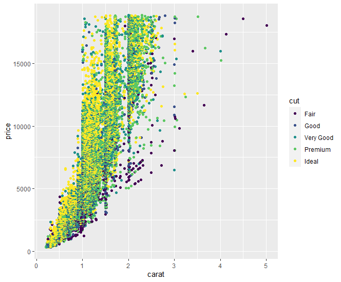 p <- ggplot(diamonds, aes(carat, price, color=cut))