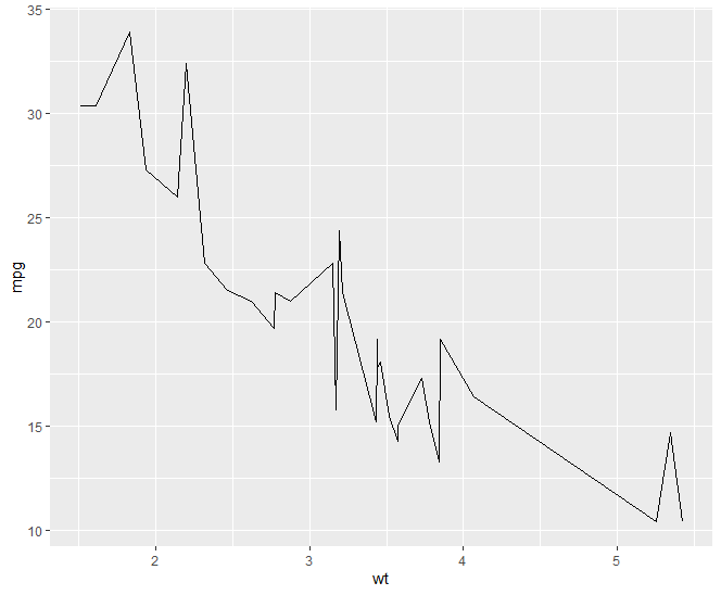 qplot(wt,mpg,data=mtcars,geom = "line")