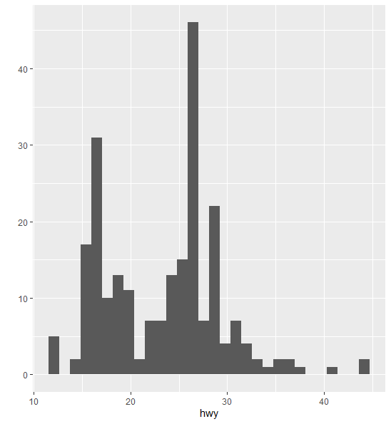 qplot(data = mpg, x = hwy)