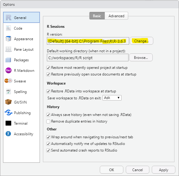 version 을 바꾼 이후 Apply 누르고 Ok를 누른 후 R-studio를 다시 껐다 키시면 됩니다.