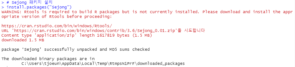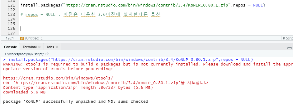위의 모든 패키지들이 올라가야지 KoNLP 가 올라가니 주의해주세요.