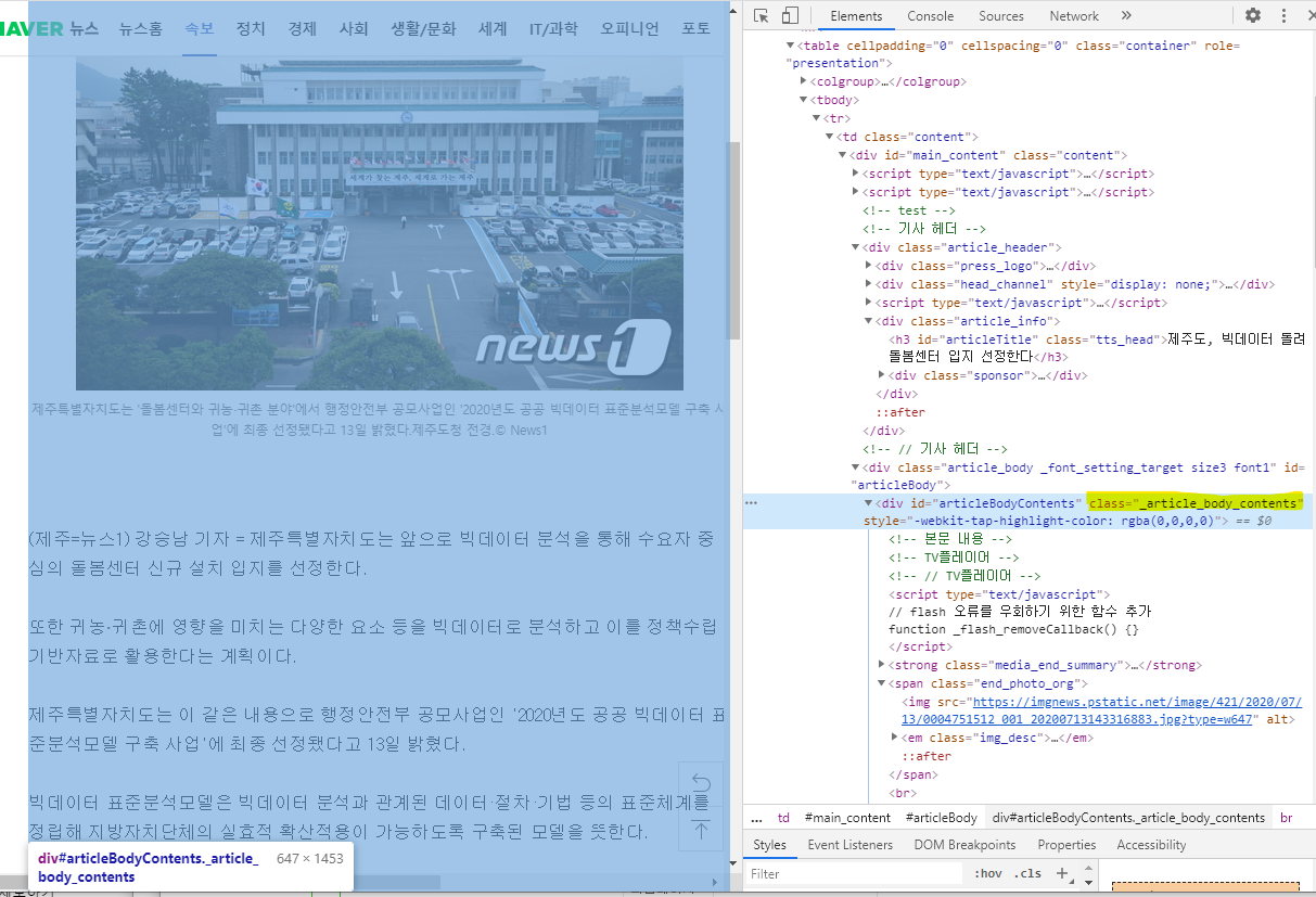 본문 = class 이름으로 선택해야 전체 바디 영역이 선택됩니다.