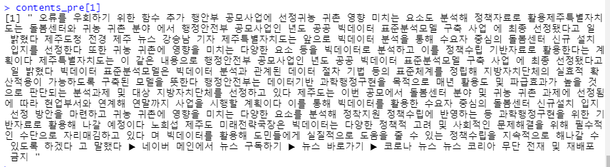 contents_pre <- gsub("[\r\n\t]",' ',contents) # 이스케이프 문자 제거