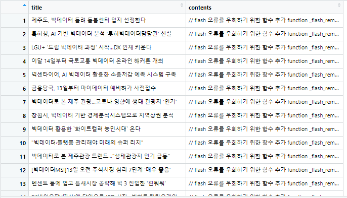 news<- cbind(title_df,contents_df) # 열중심으로 결함
