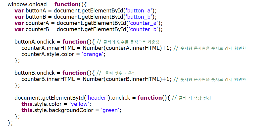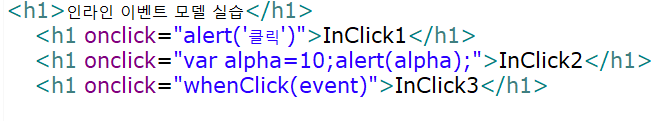- HTML 페이지의 가장 기본적인 이벤트 연결 방법.
