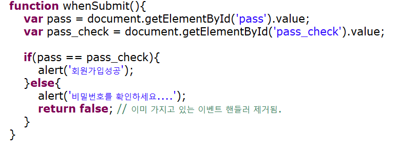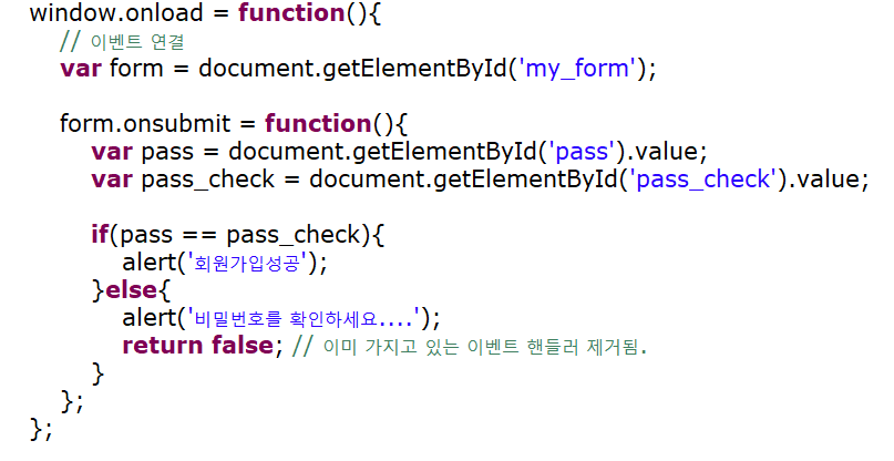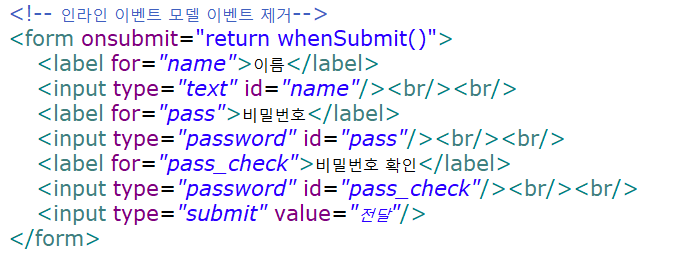 onsubmit 함수는 원래 무조건 서버로 전달하는 이벤트 이지만