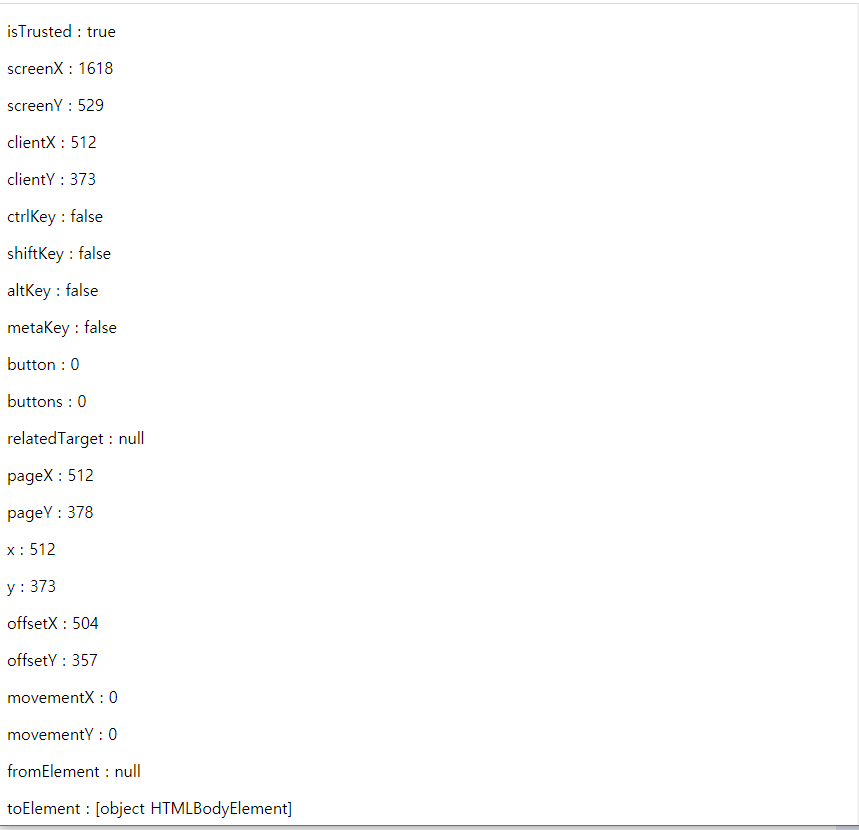 이벤트가 발생시 이벤트 객체 window.event 속성으로 전달