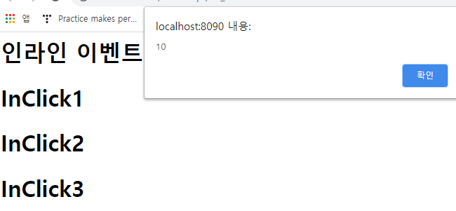 - 태그 안에서 연결하는 방법으로 간단한 코드의 기능일 때 유효하며, 코드가 길어도 script 안에서 명시하고 이름으로만 추력 가능합니다. 그래서 3번째 방법을 제일 많이 사용합니다.