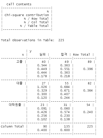 x; y # 부모학력수준(x) -> 자녀대학진학여부(y)