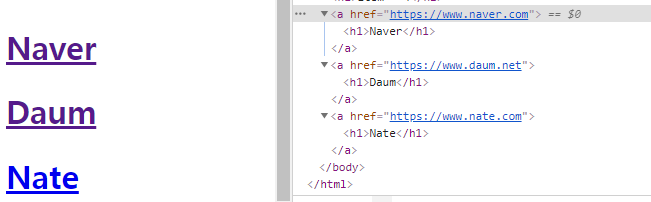 개발자 도구에서 확인한 화면에 나타난 코드 (현재 브라우저에 나타난 화면에 적용된 코드)