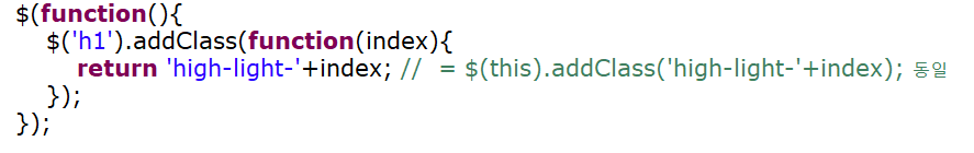 - addClass() 메서드의 매개변수에 함수 전달도 가능.