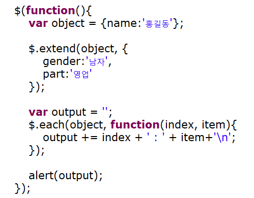 [jQuery] jQuery 배열(each) , 객체 확장(extend) 본문