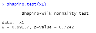정규분포 검정 함수(p-value = 0.7242), 표본이 정규 분포로부터 추출된 것인지 테스트하기 위한 함수로, 이때 귀무가설은 주어진 데이터가 정규 분포로부터의 표본이라고 합니다.