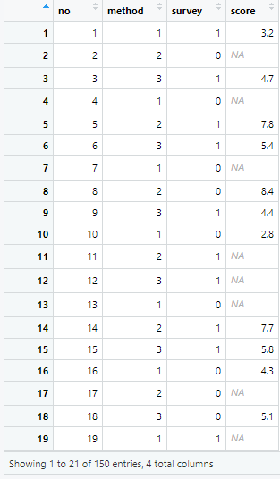 data <- subset(data, !is.na(score), c(method, score)) # NA 생략