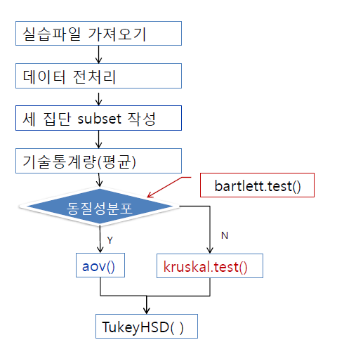 방법: 세집단(이상)간 평균 차이에 관한분석