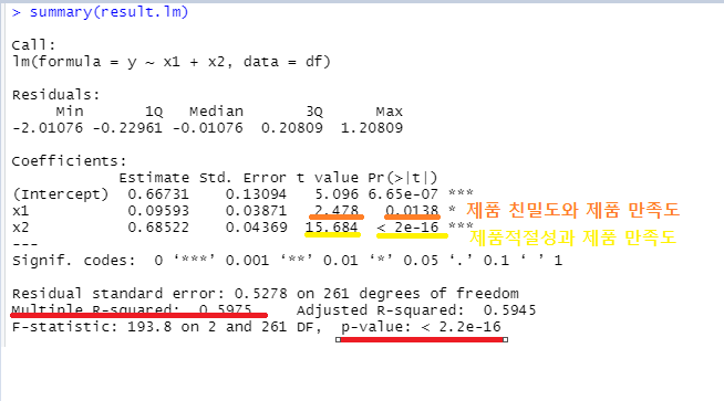 2) 종속변수에 영향을 미치는 독립변수가 유의 한지와 영향력의 정도를 알 수 있습니다.