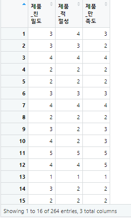 $ 제품_만족도: int 3 2 4 2 2 3 4 2 3 3 ...