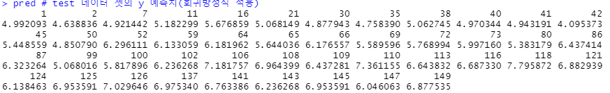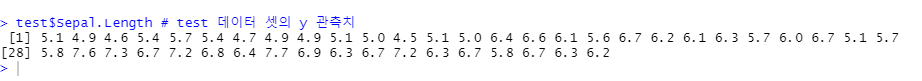 cor(pred, test$Sepal.Length) 출력값 : 0.9346613