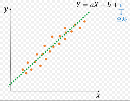 y = ax + b : 입력받은 x와 y 값을 가지고 오차를 최소화하는 a와 b의 값 찾는 과정
