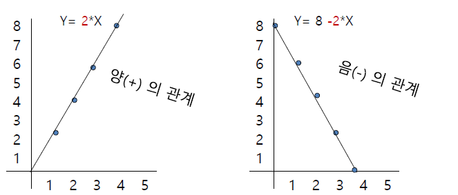 - 원인을 일으키는 x변수와 결과를 보여주는 y 변수의 관계