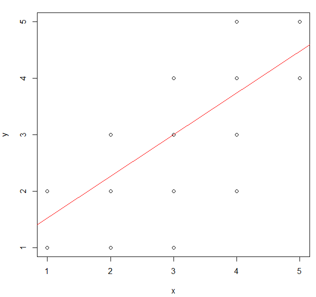 : 회귀방정식에 의해서 그려진 y의 추세선, 산포도 각 점의 위치를 기준으로 정중앙 통과하는 회귀선 추정 방법