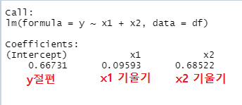 오차가 최소가 되어지는 값을 lm 을 통해서 출력준 값입니다.