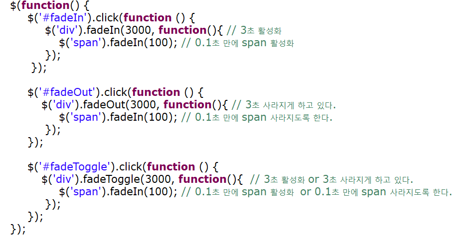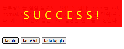 - fadeIn 매서드를 활용하여 서서히 보이도록 합니다.