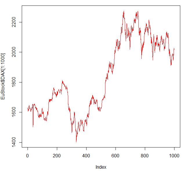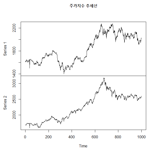data("EuStockMarkets") # 유럽(1991~1998년)의 주요 주식의 주가지수 일일 마감 가격.