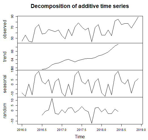 ② 시계열자료 특성 규명 : 시계열에 영향을 주는 일반적인 요소(추세, 계절, 순환, 불규칙)를 분해해서 분석한다.(시계열 요소 분해법)
