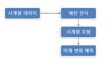 : 어떤 현상에 대해서 시간의 변화에 따라 일정한 간격으로 현상의 변화를 기록한 시계열 데이터를 대상으로 미래의 변화에 대한 추세를 분석하는 방법, 시간 경과에 따른 관측 값의 변화를 패턴으로 인식하여 시계열 모형을 추정하고, 이 모형을 통해서 미래의 변화에 대한 추세를 예측하는 분석방법입니다. (시계열 자료 - 시간의 흐름에 따라 관찰된 데이터)