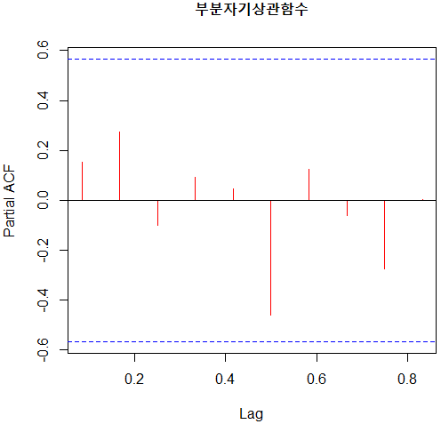 잔차가 백색 잡음(white noise) 검정(모형의 잔차가 불규칙적이고, 독립적)