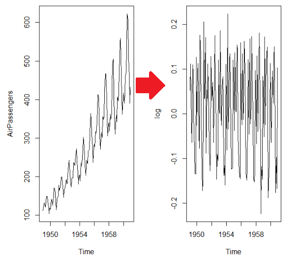- 분산이 일정하지 않은 시계열은 변환(transformation)을 통해 정상화