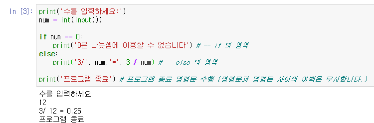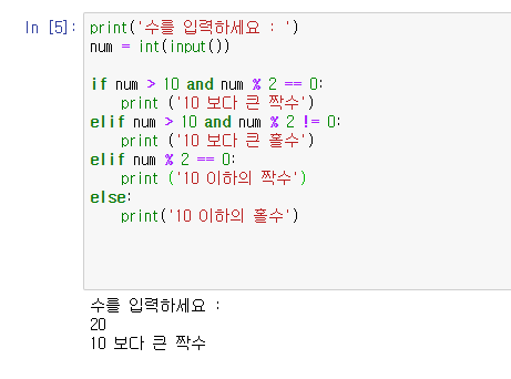 : elif와 else는 단독으로 사용할 수 없으며 if, else 형태로 사용하거나, if, elif, else 형태로 사용합니다.