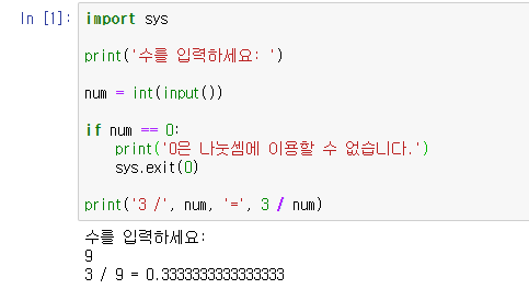 * sys.exit : 프로그램을 나갑니다. (import sys 사용)