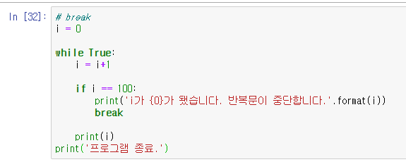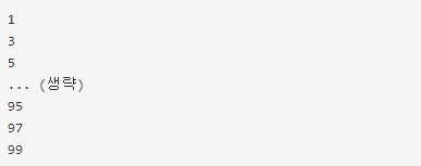 예제 6) continue - for로 0부터 99까지 반복하면서 홀수만 출력