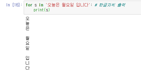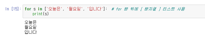 예제 2) for 문 뒤에 [ 문자열 ] 리스트 사용
