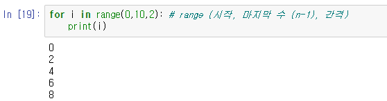 예제 1) range 사용 range(시작, 끝(n-1) , 간격)