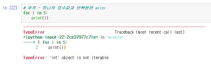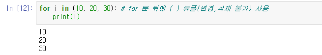 예제 1) for 문 뒤에 ( ) 튜플(변경,삭제 불가) 사용