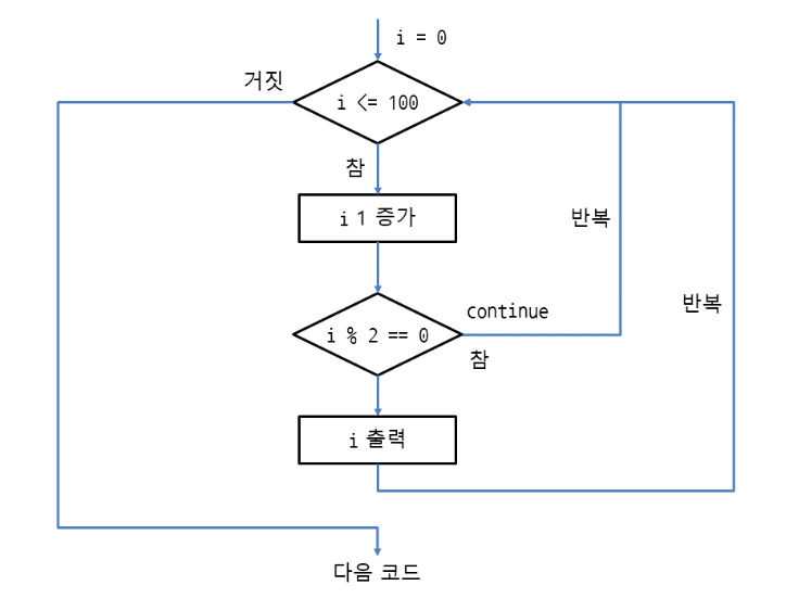 * 조건식 → 반복할 코드 및 변화식 → 조건식으로 순환하는 부분이 루프(loop)